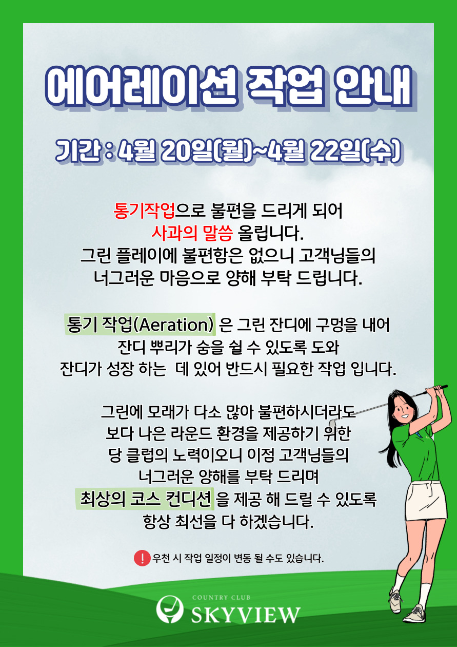 그린 통기작업 일정 안내