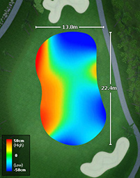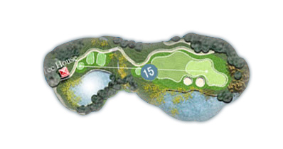 그린이 깊게 누워 있는데 계곡 너머로 중간에 그린을 파고 든 팟